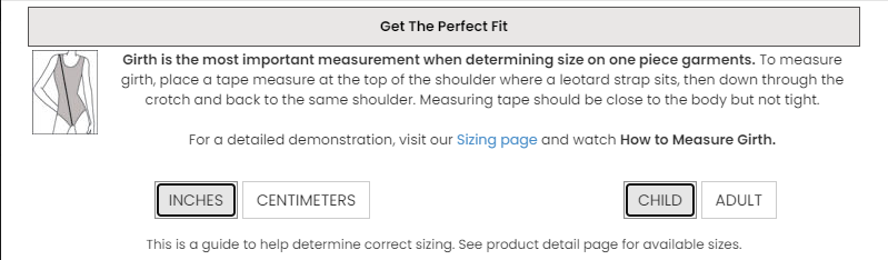 • Sizing Details